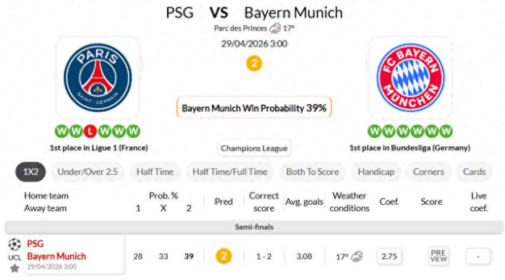 -Bayern eliminated Atalanta and Real Madrid in this Champions League campaign, with proven big-match capability.