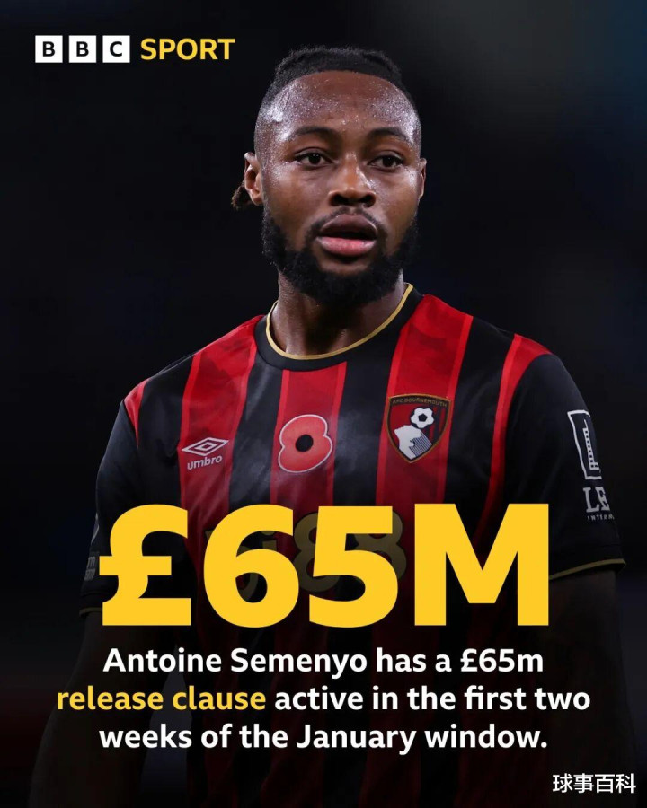 转会记者罗马诺表示,对所有密切关注塞梅尼奥的俱乐部而言,条款金额已非常明确:1月份为6000万英镑固定+500万英镑浮动,总计约6500万英镑;到了夏窗,金额会降到大约5000万英镑。接近伯恩茅斯的消息人士保证,俱乐部非常乐意先留人至赛季结束,7月再低价出售,让塞梅尼奥继续担任主帅安多尼·伊劳拉的关键棋子。但主动权不在他们——只要条款被激活,去留完全由球员决定。