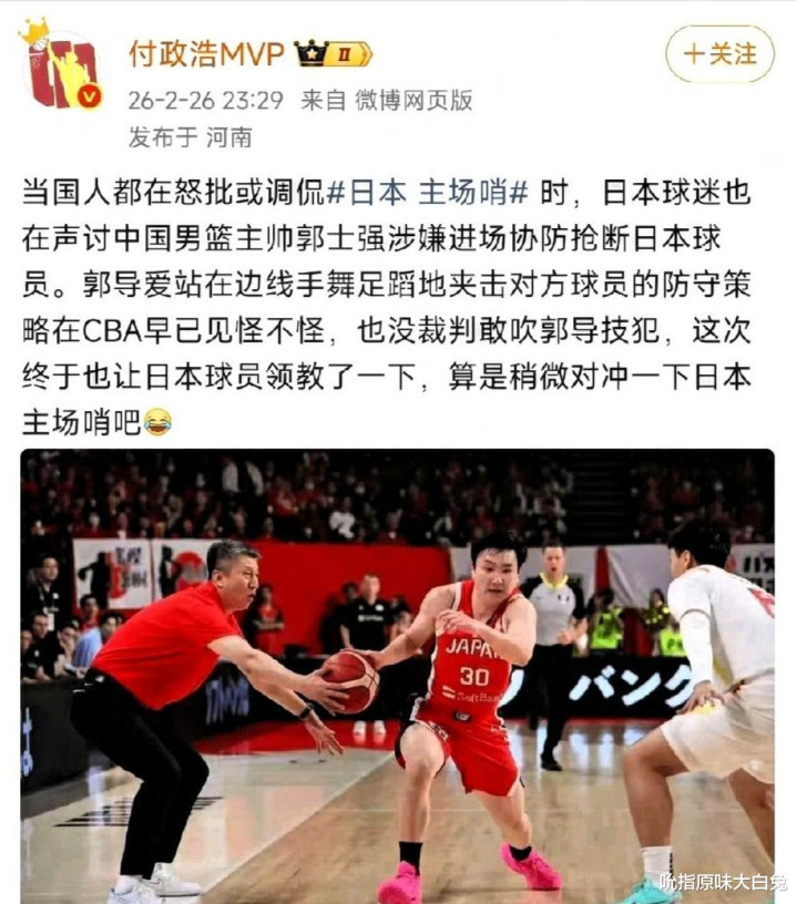 日本球迷赛后在声讨郭士强涉嫌进场协防抢断日本球员。原来以为是P图,国内媒体人在社媒上发文才知道不是P图。郭士强到底碰没碰到富永启生的球?现场的图片看起来是郭士强动作比较夸张,但是按照当时的裁判判罚尺度,郭士强如果真的断了富永启生的球,估计会被驱逐出场。